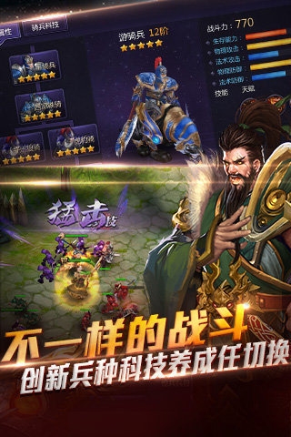 不一樣的戰(zhàn)斗:打破常規(guī)武將兵團(tuán)共戰(zhàn),兵種戰(zhàn)斗形態(tài)自由切換不一樣的世界:經(jīng)典SLG大地圖玩法,攻城略地,隨機(jī)事件,史詩日常