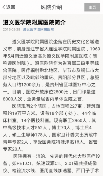 遵醫(yī)附院是為遵醫(yī)醫(yī)學院專門定制開發(fā)的一款便于患者就醫(yī)使用的手機應(yīng)用,可方便用戶了解醫(yī)院及科室信息,方便用戶網(wǎng)上掛號,不必在為漫長的排隊等待而發(fā)愁。
