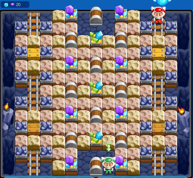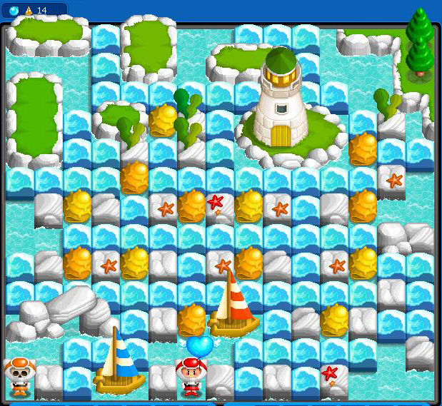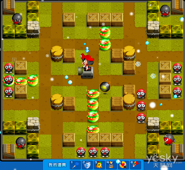 說明:泡泡雖然沒有連在一起,但是爆炸間隔時(shí)間短的關(guān)系,敵人仍然不能夠逃脫