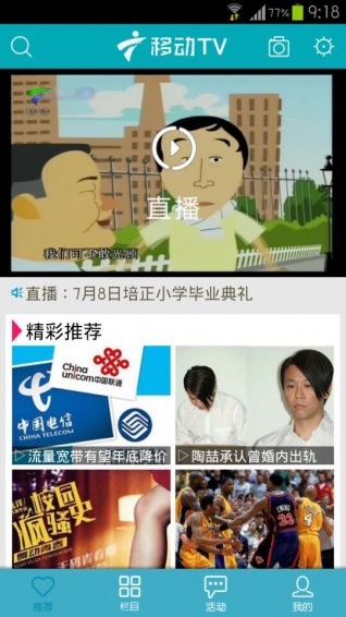 移動(dòng)TV是三網(wǎng)傳媒旗下廣東廣播電視臺(tái)移動(dòng)頻道全新打造的一款集電視節(jié)目同步直播,點(diǎn)播軟件。涵蓋微電影、資訊、綜藝、娛樂、科教等各類視頻節(jié)目。另增加了4G直播互動(dòng)功能,讓精彩隨處掌握。