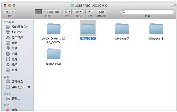 第一步:打開驅(qū)動(dòng)文件夾,打開macosx文件夾,雙擊AX88772.dmg