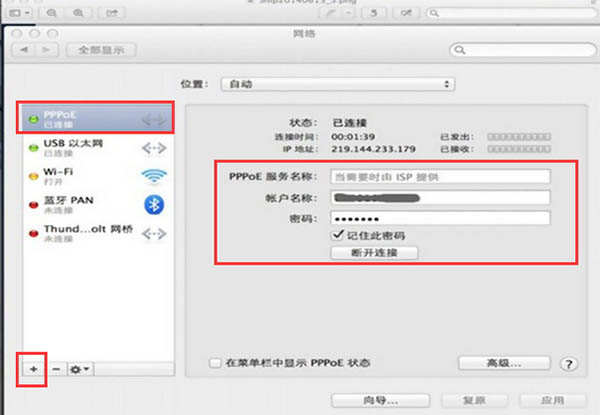 蘋果MacOSX系統(tǒng)如何新建網(wǎng)絡(luò)PPPOE?打開MacBook,選擇桌面菜單“InternetConnect”(Internet連接),進(jìn)入網(wǎng)絡(luò)連接設(shè)置頁面。如果設(shè)置被鎖,請先解鎖,然后點(diǎn)擊“+”圖標(biāo)新建一個(gè)網(wǎng)絡(luò)連接。創(chuàng)建好后寫好服務(wù)名稱(可以忽略不寫),填好寬帶賬號和密碼就行了。如果不知道寬帶賬號和密碼,可以看看你原來的撥號記錄;實(shí)在找不到,可以聯(lián)系網(wǎng)絡(luò)運(yùn)營商解決。