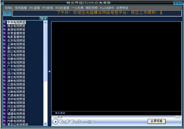 晴云網(wǎng)絡(luò)電視集成了幾乎目前所有的主流P2P播放器, 是基于聚合技術(shù)的P2P網(wǎng)絡(luò)直播軟件,它提供了目前最流行的PPlive、PPStream、UUSEE、QQLive、TVU、VGO、3TV、Joylive、PPMATE、TVkoo、SopCast、BOBO,沸點(diǎn)電視,螞蟻電視,新浪,聯(lián)播,迅雷等P2P網(wǎng)絡(luò)電視核心引擎,采用先進(jìn)的封裝技術(shù),具有穩(wěn)定簡易的安裝、卸載、維護(hù)和修復(fù)功能,并對(duì)集成的解碼器組合進(jìn)行了盡可能的優(yōu)化和兼容性調(diào)整。全面支持包括中國電信、中國聯(lián)通、中國網(wǎng)通、中國鐵通、中國教育網(wǎng)在內(nèi)的絕大部分用戶。而這一切,您將不需要支付任何費(fèi)用,您要做的,僅僅是下載和安裝使用它-可以在線觀看幾千家國內(nèi)外港臺(tái)地區(qū)的電視臺(tái)同步直播和幾萬部影視節(jié)目的直播和點(diǎn)播.主要包括電視直播,高清直播,高清影視,PPS影城,一心向佛,綜藝視聽,精彩視頻等模塊。