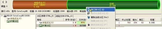然后我們還需要為擴(kuò)展分區(qū)劃分邏輯分區(qū),擴(kuò)展分區(qū)也只是分區(qū)的一個(gè)管理邏輯,是為了解決分區(qū)數(shù)量限制問題引入的一種分區(qū)管理機(jī)制,擴(kuò)展分區(qū)無法直接使用,還需要再次劃分為邏輯分區(qū),下面天緣為擴(kuò)展分區(qū)創(chuàng)建三個(gè)邏輯分區(qū)。再在擴(kuò)展分區(qū)上鼠標(biāo)右鍵選擇建立新分區(qū),如下圖: