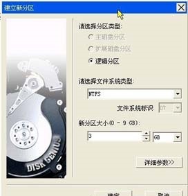 選擇邏輯分區(qū)的文件系統(tǒng)類型,并輸入邏輯分區(qū)大小,并點(diǎn)擊確認(rèn)即可,如果為了保證分區(qū)美觀,可以把圖中的新分區(qū)大小位置單位改成MB,然后輸入以M為單位的分區(qū)大小。最后點(diǎn)擊確認(rèn)確認(rèn)即可創(chuàng)建邏輯分區(qū),采用同樣方法,天緣分了三個(gè)邏輯分區(qū),如下圖: