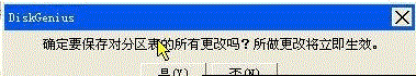 以上分區(qū)操作都是在內(nèi)存里操作的,沒有應(yīng)用的實(shí)際硬盤上,可以隨時(shí)取消或修改,要讓這些修改生效,還需要點(diǎn)擊上圖中的“保存更改”,點(diǎn)擊“保存更改”按鈕后,彈出如下警告: