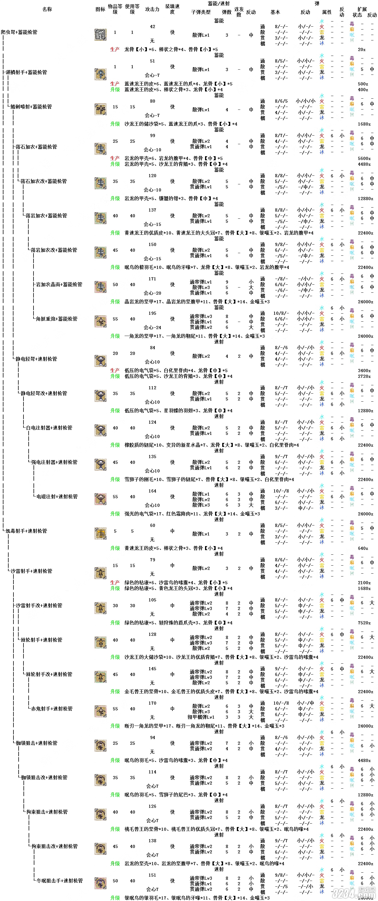 在此分享怪物獵人ol弩炮派生一覽表(2015年12月最新):