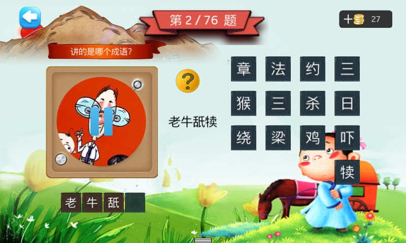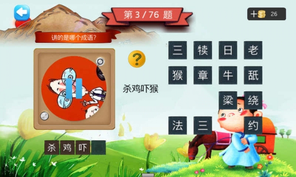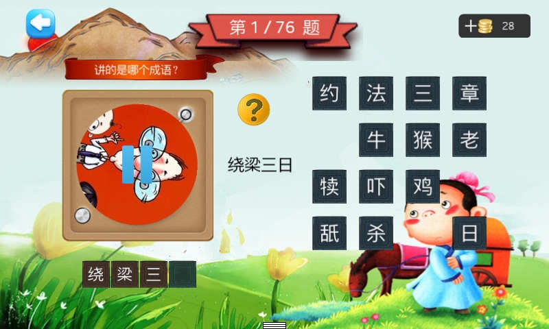 五年級聽聲猜成語:針對少年兒童益智開發(fā)的一款游戲,我們搜集了76首經(jīng)典成語,編輯成故事,并且附加了背景音樂,使播講有聲有色,讓孩子通俗易懂,是少年兒童學(xué)習(xí)收藏之佳品。讓孩子學(xué)習(xí)成語故事,不僅能擴(kuò)大孩子的詞量,積累素材,增長知識面,了解相關(guān)歷史,還能培養(yǎng)孩子的文學(xué)素材,增強(qiáng)文學(xué)表達(dá)能力,使語言更具文采,最重要的是從中可獲得啟示和學(xué)到一些為人處世的道理。五年級聽聲猜成語,通俗易懂的成語。
