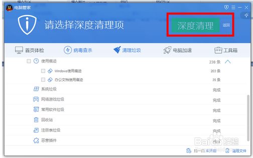 5、對比之前QQ安全管家以往版本的清理垃圾來說,新版本清理垃圾后,會有一個【深度清理】功能,如果電腦用的時間比較久了,來一次深度清理也是相當(dāng)爽的一件事情