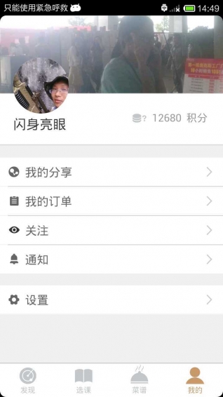 1.主界面發(fā)現(xiàn)、選課、菜譜、我的