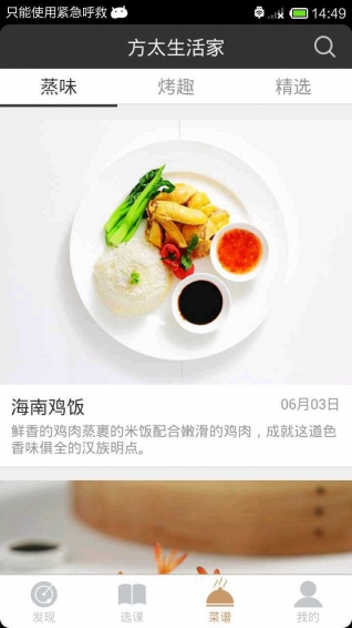 4.菜譜主界面有推廣的蒸味、烤趣、精選菜譜