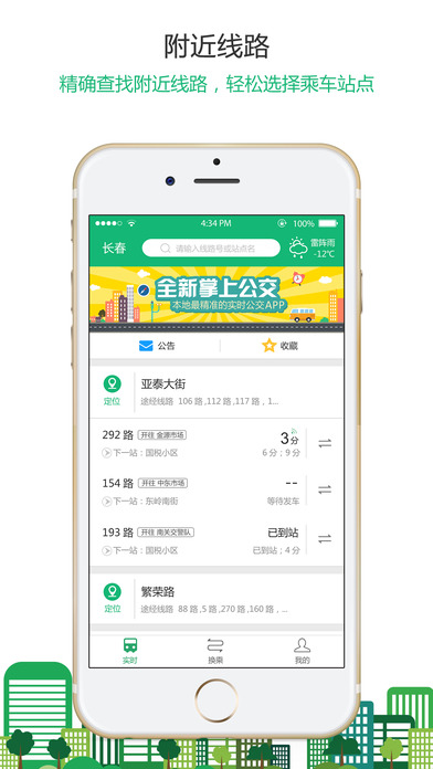 有了長春掌上公交app手機上的實時公交電子站牌,有了有了長春掌上公交app無論何時何地,長春市民們通過手機就可以查詢到要乘坐的公交實時位置、實時到站、實時離站等信息。有了長春掌上公交app最準確的公交實時數(shù)據(jù)、最便捷的公交乘車方案、最貼心的公交等車提醒,是您每日上班出行、周末悠閑出行、假期旅游出行的貼心伴侶。長春掌上公交app通過安裝在公交車上的GPS車輛衛(wèi)星定位系統(tǒng)實時上傳車輛實時位置信息,數(shù)據(jù)上傳到長春市交通運輸局云服務器,通過整理將數(shù)據(jù)分析應用到手機APP上,可以保證信息的時效性。