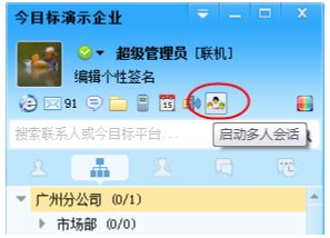通過 主菜單- 操作- 多人會(huì)話打開人員選擇框,或者直接從主界面點(diǎn)擊多人會(huì)話圖標(biāo),您可以從組織結(jié)構(gòu)、自定義組以及友好企業(yè)中選擇加入到多人會(huì)話的人員。需要注意的是,只有在線人員才可以加入到多人會(huì)話中。