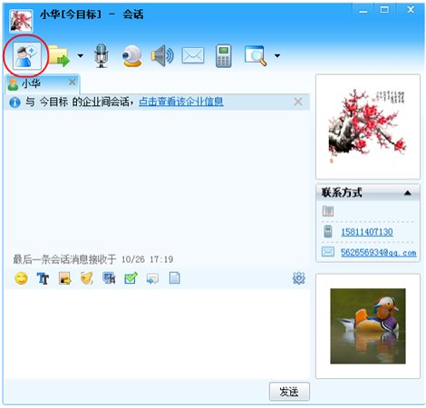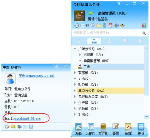 通過快捷操作按鈕,還可以與當(dāng)前聯(lián)系人進(jìn)行即時(shí)對(duì)話,發(fā)送郵件,短信及文件等。
