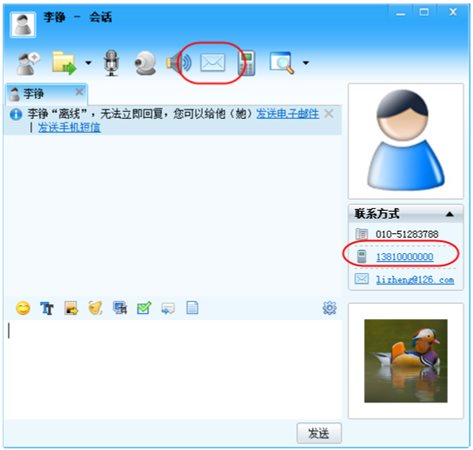 除此之外,還可以在與聯(lián)系人的會(huì)話窗口中直接點(diǎn)擊手機(jī)圖標(biāo)發(fā)送短信。