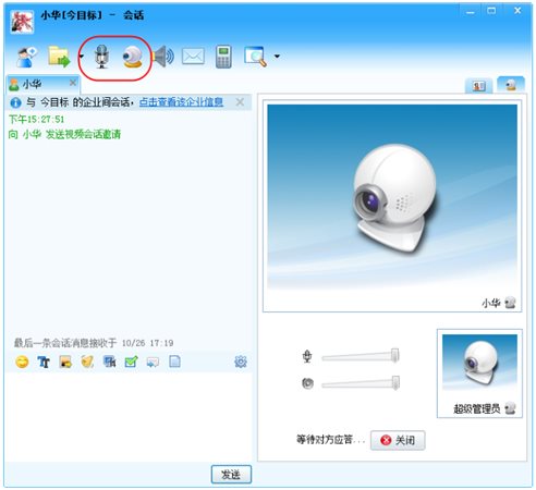 打開會(huì)話窗口,點(diǎn)擊語音或視頻會(huì)話圖標(biāo)即可開始會(huì)話。