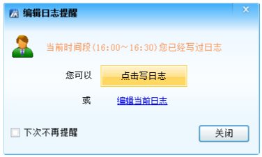 在彈出的日志提醒窗口中勾選上“下次不再提醒”,則到了下次提醒時(shí)間該窗口將不再?gòu)棾觥?br />如果要恢復(fù)提醒,可以通過 日志- 時(shí)間段,來重新勾選“提醒用戶編寫日志”。