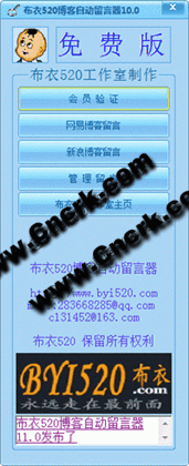 布衣520博客自動留言器10.0發(fā)布 新浪,網(wǎng)易博客自動留言,留言成功率99% 自定義采集網(wǎng)易,新浪帳號。 多帳號循環(huán)留言 ADSL全自動撥號換IP 介面全面更新