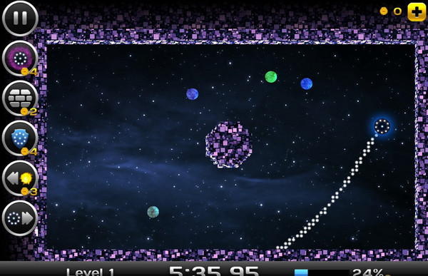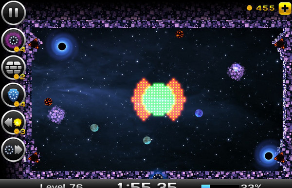 青睞之光SpaceXonix是SRFGames制作發(fā)行的一款太空冒險(xiǎn)游戲。游戲中需要你利用重力感應(yīng),控制你的飛碟在太空劃分自己的領(lǐng)地。當(dāng)領(lǐng)地達(dá)到一定的百分比時(shí),就可以完成關(guān)卡,非常考驗(yàn)協(xié)調(diào)能力以及眼力。游戲中還有豐富的道具可以使用,可以用過(guò)關(guān)的金錢(qián)獎(jiǎng)勵(lì)進(jìn)行購(gòu)買(mǎi)。【配置要求】