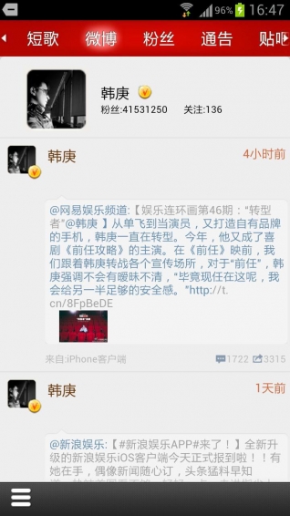 飯團韓庚app,專業(yè)的追星應用。用飯團韓庚app,隨時查看韓庚最新動態(tài),和喜愛韓庚的粉絲一起聊天,打榜,接機,找到志趣相同的好朋友。【軟件特點】