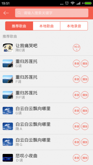 音樂寶訓(xùn)練應(yīng)用中錄制了近千首藝術(shù)歌曲的鋼琴正譜伴奏,一首歌三個調(diào)(不能移調(diào)演唱的歌劇詠嘆調(diào)等除外),并帶歌詞(中文、外文均有)隨伴奏閃亮滾動功能,使學(xué)生練歌時擺脫了“干唱”的尷尬,能更加自如的表現(xiàn)歌曲,戴耳機或外接藍牙音響就可以開始演唱,不受場地限制。同時,還帶錄音并合成及轉(zhuǎn)發(fā)功能,學(xué)生可以在錄音狀態(tài)下演唱完畢后,在手機上調(diào)節(jié)演唱音量和伴奏音量的大小,達到自己滿意的狀態(tài)后合成并存在自己手機里,可以通過微信或QQ分享給好友、老師、同學(xué)。