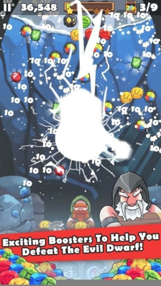 《泡泡射擊:財(cái)寶凸現(xiàn) Bubble Shooter Treasure Pop》是一款結(jié)合了策略元素的泡泡龍消除類手機(jī)游戲。游戲中的關(guān)卡設(shè)計(jì)的相當(dāng)?shù)木?,效雖然果談不上驚艷,但是流暢度好,標(biāo)尺線準(zhǔn) ,相信你一定會(huì)愛不釋手的哦!游戲以奪寶與收集為目的,從小矮人的手中搶奪更多的寶藏,玩法多樣,你可以怎么玩都行,充滿魔幻色彩的畫面,炫酷的技能特效,使用不同的道具讓你可以體驗(yàn)多種炫酷的畫面哦。