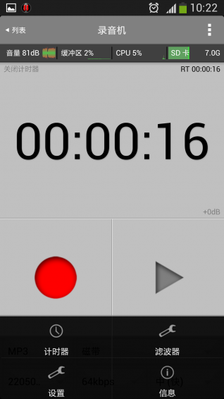 -錄音時(shí)顯示音量、緩沖區(qū)、SD卡、CPU信息