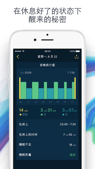 早晨您還將得到一份圖表和大多數(shù)基礎(chǔ)統(tǒng)計(jì)數(shù)據(jù),這些就是您的夜晚睡眠記錄。