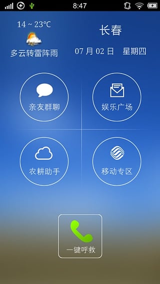 十戶聯(lián)防客戶端是中國移動通信集團吉林有限公司推出的一款面向“三農(nóng)”的客戶端軟件,本軟件面向智能手機用戶,提供親友群聊、娛樂廣場、農(nóng)耕助手、移動專區(qū)和一鍵呼救等功能。【軟件功能特點】