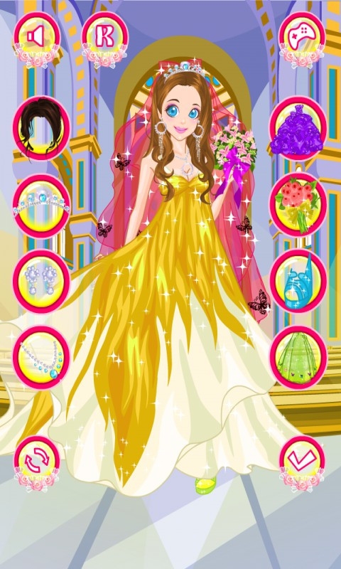 婚禮換裝裝扮這是一個換裝類游戲。點擊衣服圖標(biāo)的按鈕可以直接切換衣服,其他的按鈕可以切換其他的道具;“R”代表重置,讓裝扮回到開始的樣子;旋轉(zhuǎn)的箭頭是“隨機”,按了之后角色隨機穿一套衣服和飾品;“勾勾”是展示你打扮好的角色,按下之后會隱藏掉其他的按鈕;喇叭按鈕可以關(guān)掉音樂。我的姐姐很快就要結(jié)婚了,所以我們應(yīng)該為典禮選擇漂亮的衣服!加入我們吧,幫我們找到最好的款式。這是一個婚禮的游戲,會很有趣!