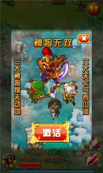 飛行的不再是鋼鐵機(jī)械,而是強(qiáng)大的血肉武將!游戲以三國(guó)知名武將為主角,每個(gè)人物獨(dú)立擁有自己特色的成長(zhǎng)路線。殺敵獲得經(jīng)驗(yàn),進(jìn)而提升等級(jí)解鎖獨(dú)有技能。【破解說(shuō)明】
