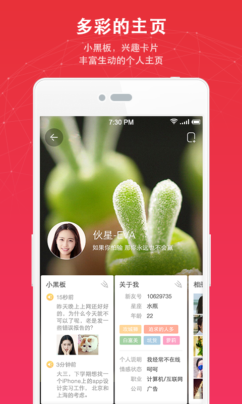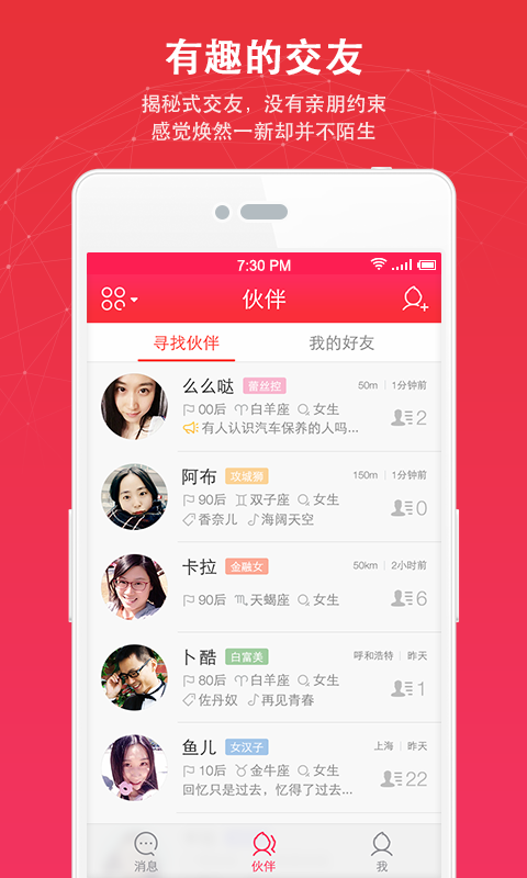 伙星app安卓版是一款創(chuàng)新的拍照社交軟件。這款軟件讓用戶隨時(shí)隨地隨意分享眼前的精彩,體驗(yàn)最in的拍照聊天體驗(yàn),同時(shí)還能人士心得朋友!