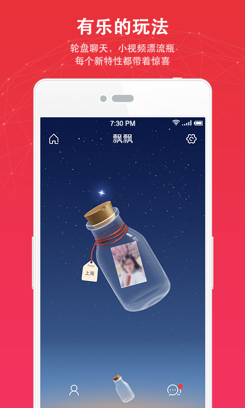 伙星app是一款非常新奇的社交軟件,用戶可以用漂流瓶尋找附近的帥哥美女,并且用畫畫或者小視頻的形式和這些陌生朋友聊天,如果覺得談話內(nèi)容比較隱私,用戶還能讓自己變成匿名狀態(tài),聊什么都不怕了。