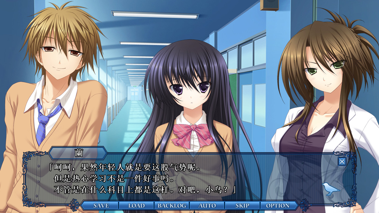 不知該如何描述的結(jié)局。隨著翔的努力和小鳥(niǎo)的最后的告白,男女主角的保健老師河野蘭與小鳥(niǎo)之間的真摯感情,為這部galgame帶來(lái)了治愈。