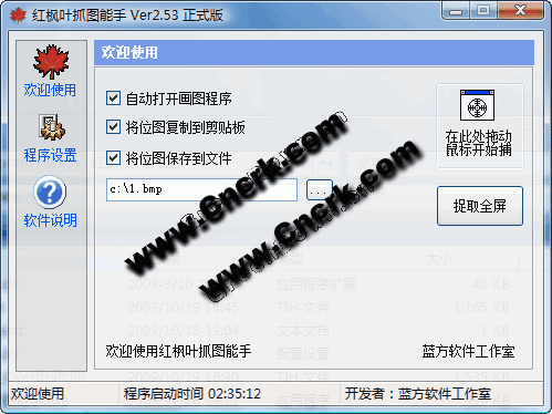 紅楓葉抓圖能手 V2.53 簡(jiǎn)體中文綠色免費(fèi)版 紅楓葉抓圖能手是一款功能強(qiáng)大,無(wú)功能限制并且完全免費(fèi)的抓截圖軟件。可以讓你輕松的獲得想要的任意屏幕截圖。包括任意大小的屏幕,桌面,網(wǎng)頁(yè),窗口等,并包括其中任意的選定區(qū)域,抓圖方式多,提供多種輸出方式,并可自動(dòng)打開捕捉的圖片進(jìn)行編輯和處理。可保存為不同的圖片格式