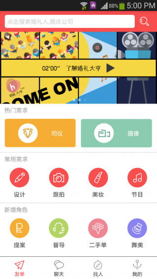 1功能強大:秒級發(fā)單、秒級接單,價格透明,訂單列表一目了然;2海量數(shù)據(jù):有國內最全的婚慶行業(yè)數(shù)據(jù),上萬家婚慶公司、上萬名婚禮人;