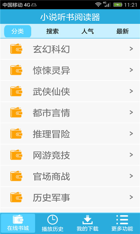 文學(xué)名著,粵語(yǔ)小說(shuō),女生專(zhuān)欄,搞笑幽默,聽(tīng)廣播劇等等。