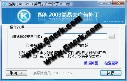2009.11.15 v1.1 改寫檢測(cè)提示模塊,完善補(bǔ)丁功能,添加對(duì)酷狗2010版的支持。