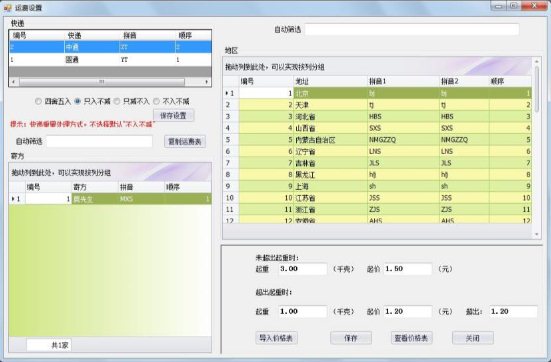 運(yùn)費(fèi)表設(shè)置概念說明: