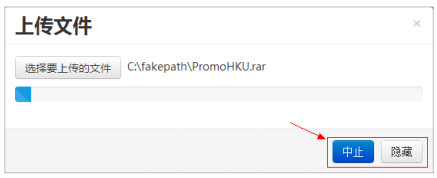 4.點(diǎn)擊“中止”圖標(biāo),停止上傳。點(diǎn)擊“隱藏”圖標(biāo),對(duì)話框隱藏,上傳繼續(xù)。