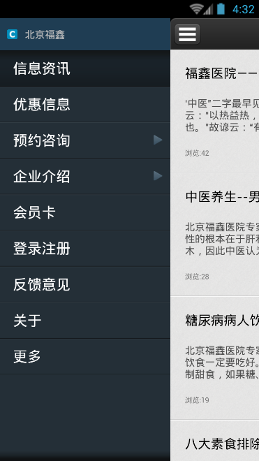 北京福鑫是北京市內(nèi)的北京福鑫醫(yī)院的一個(gè)手機(jī)客戶端,北京福鑫有著很專業(yè)的醫(yī)療方面相關(guān)的知識(shí)在其中,對(duì)于用戶來說,可以在北京福鑫中查找到相關(guān)的內(nèi)科、外科、婦科、男科等等相關(guān)的診療的科目,那么在北京福鑫的手機(jī)APP中,可以了解到更多的相關(guān)的資訊,那么在這里為大家整理的相關(guān)的北京福鑫的手機(jī)APP的下載,歡迎有需要的用戶來進(jìn)行下載使用。【軟件特色】