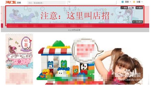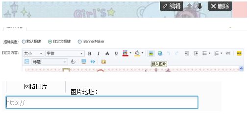 首先編輯店招,選擇插入圖片,把我們之前做好的店招插進來。(一般是直接使用繪圖軟件在模板包里面的店招圖上寫店名,然后上傳到自己的圖片空間)