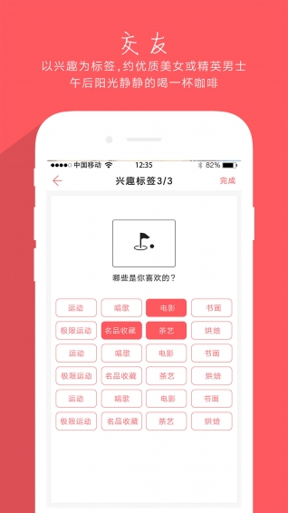價(jià)值:為精英男女提供工作之外的興趣生活社交平臺(tái),可單約亦可群聚。