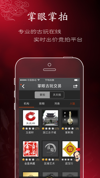 掌眼-古玩古董藝術(shù)品收藏交易平臺(tái)是國內(nèi)首個(gè)集手機(jī)古玩交易、手機(jī)古玩拍賣、手機(jī)古玩論壇、手機(jī)古玩店鋪等功能為一體的古玩平臺(tái),其定位于用手機(jī)玩轉(zhuǎn)古玩,是國內(nèi)手機(jī)古玩行業(yè)的領(lǐng)軍品牌,是中國最大的古玩藝術(shù)品收藏投資交流交易的手機(jī)古玩平臺(tái)。【軟件特點(diǎn)】