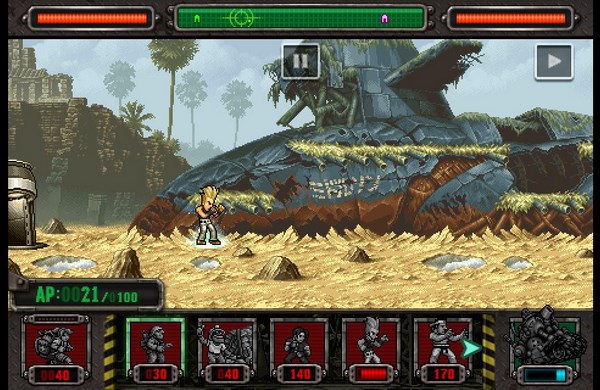 合金彈頭塔防保留了合金彈頭系列中的經(jīng)典人物角色,將傳統(tǒng)的橫版射擊改為塔防,打算帶給玩家一種截然不同的游戲體驗,曾經(jīng)考驗操作,現(xiàn)在就要考驗?zāi)愕牟呗孕粤恕?該作采用了橫版卷軸式的塔防布局,玩家必須要利用戰(zhàn)場上的行動點數(shù)來召喚士兵,不同功能的士兵需要的點數(shù)也不同,而如何利用有限的點數(shù)來取得戰(zhàn)場上的優(yōu)勢,就成了游戲的致勝關(guān)鍵和魅力所在。