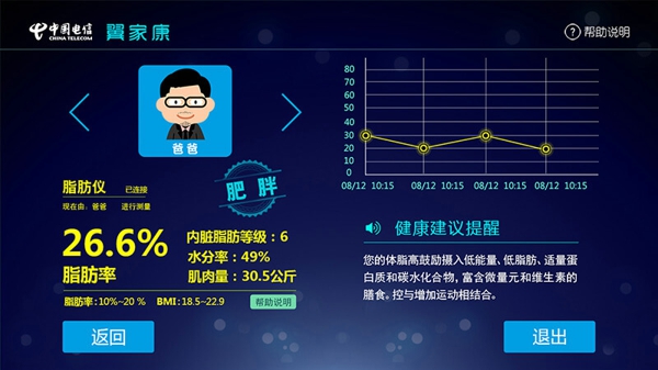 1.動態(tài)監(jiān)測:長期采集并監(jiān)測體重,血壓,血糖等體征指標;