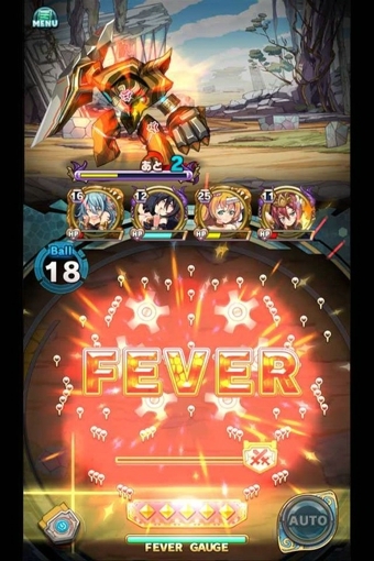 此外本作還加入了能夠?qū)ξ曳接欣摹癋ever Time”。當(dāng)玩家攻擊敵人時(shí),會(huì)掉落類似寶箱的零件在途中,玩家可以控制彈珠去打這些寶箱,打中之后屏幕最下方的Fever gauge槽會(huì)進(jìn)行蓄力,攢滿后可以發(fā)動(dòng)Fever time。在Fever time中,玩家可以利用附加的彈珠贏得更多的Combo或?qū)毾洹?/p>