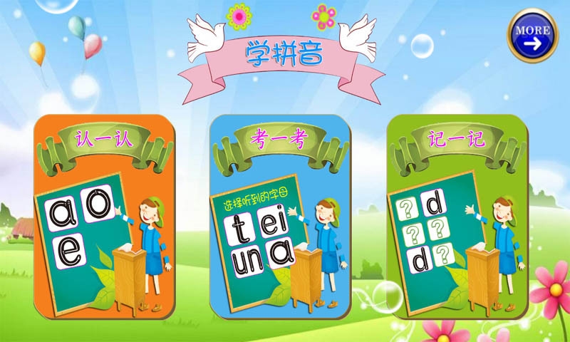 兒童教育,寶寶學(xué)漢語拼音字母,幼兒啟蒙,親子教育,智力開發(fā),通過圖文和聲音想結(jié)合的方式生動形象的向?qū)殞毺峁W(xué)習(xí)資源。并且通過考試游戲和記憶游戲的模式增加學(xué)習(xí)的娛樂。達到事半功倍的學(xué)習(xí)效果。