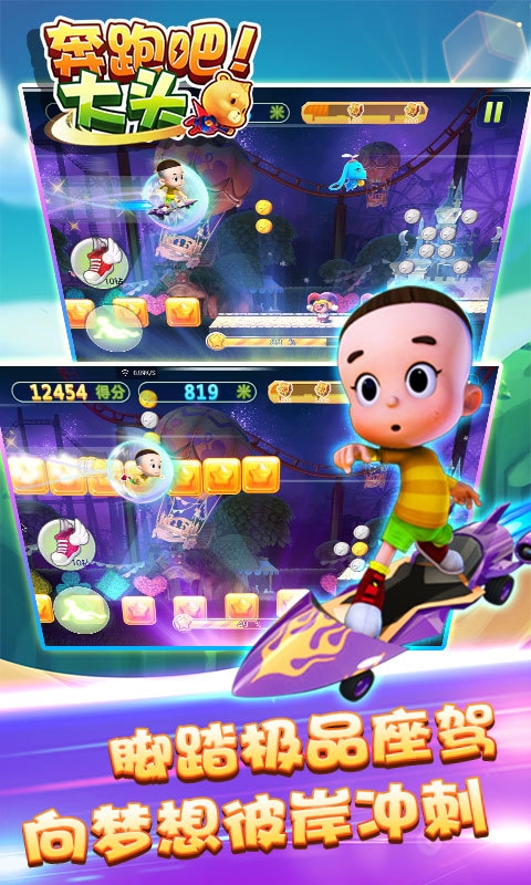 奔跑吧!大頭!經(jīng)典動畫角色原味呈現(xiàn),在奇幻冒險中重溫兒時記憶。4種高大上的極品座駕、8只可愛萌寵、豐富神秘的奇幻場景、還有暢快淋漓的的跑酷模式,讓你根本停不下來!《奔跑吧!大頭》包含真人競技場模式,你可以隨時隨地PK全球的跑酷高手。我們給跑酷達(dá)人們準(zhǔn)備了豐厚的獎勵:刮刮樂兌換券、不限量動畫周邊禮品;更有XBOXONE、PS4等超豪華大禮坐等主人帶走推倒。您的雙手是不是饑渴難耐了?馬上拿起手機!和大頭一起奔跑吧!