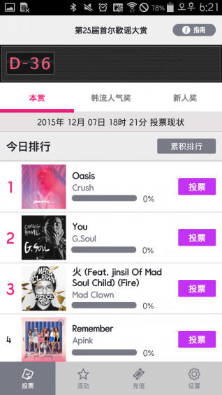 首爾歌謠大賞手機(jī)投票開始了!